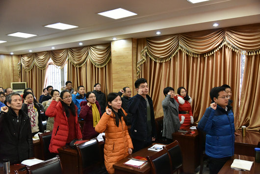 全体党员重温了入党誓词,齐唱国歌。    (张学海/文/图)