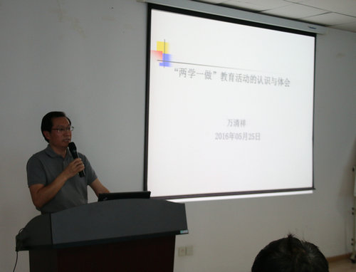 同时,万清祥副校长还通过“学与做”,结合高校教师的岗位责任,强调了意识形态工作是党和国家一项极端重要的工作,是一项战略工程、固本工程、铸魂工程,高校作为意识形态的前沿阵地,肩负着学习研究宣传马克思主义的重要使命,教师是从事人类文明传承的职业,应怀有“家国情怀”,并时刻坚守师德师风,作为教师党员,不仅要让学生学习文化知识,更要用自身高尚道德情操感染每一位学生,要认真学习领会“两学一做”的内涵和要求,并将其融入到教育教学工作当中,真正帮助学生,真心爱护学生。