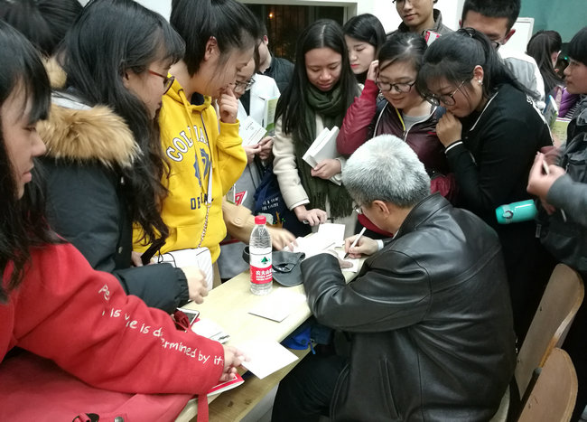 党课结束后,王焰新校长还继续与同学们进行交流,并应同学愿望在beat365中文官网宣传名信片上书写勉励寄语。