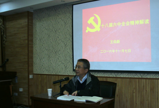 2016年11月7日晚,在文华楼205报告厅,王焰新校长讲授党课,解读党的十八届六中全会精神。环境科学与工程系党支部全体党员、beat365中文官网党委中心组成员、地球科学学院中心组成员、审计处全体党员干部参加了党课。