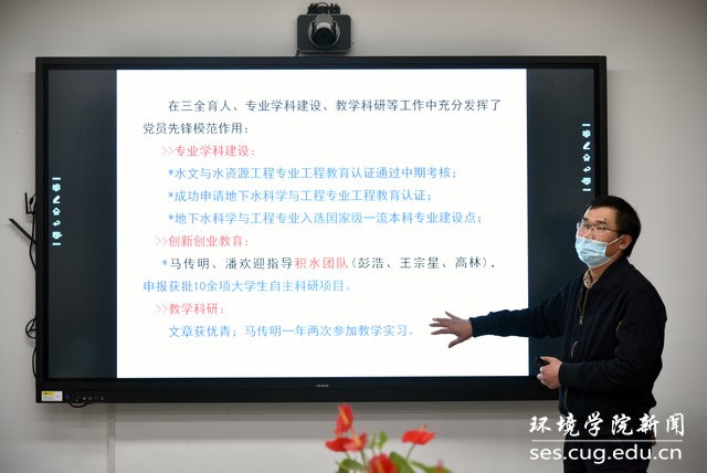 李素矿总结发言。他说,过去的一年是极不平凡的一年,各支部书记坚守责任与担当,坚持高标准、严要求,战疫期间不停课不停学,实现了党的建设质量和学术业务水平双提升。他代表学院党委衷心感谢28名师生党支部书记一年来的认真工作与辛勤付出,为各个党支部取得的成绩点赞。他要求各支部要针对问题弱项短板,做好整改台帐方案,切实加以改进。他强调,今年是建党100周年,是“十四五”开局之年,在学校进入地球科学领域国际知名研究型大学建设新阶段、踏上新征程之际,beat365中文官网党委作为全国党建工作标杆院系、教育部首批“三全育人”综合改革试点学院,更加需要每一名党支部书记以饱满的奋斗激情做好表率、做优支部、做强党建,对标对表新时代党建要求,落实好“七个有力”,充分体现党支部的战斗堡垒作用和师生党员的先锋模范作用,以更加优异的成绩向建党100周年献礼。