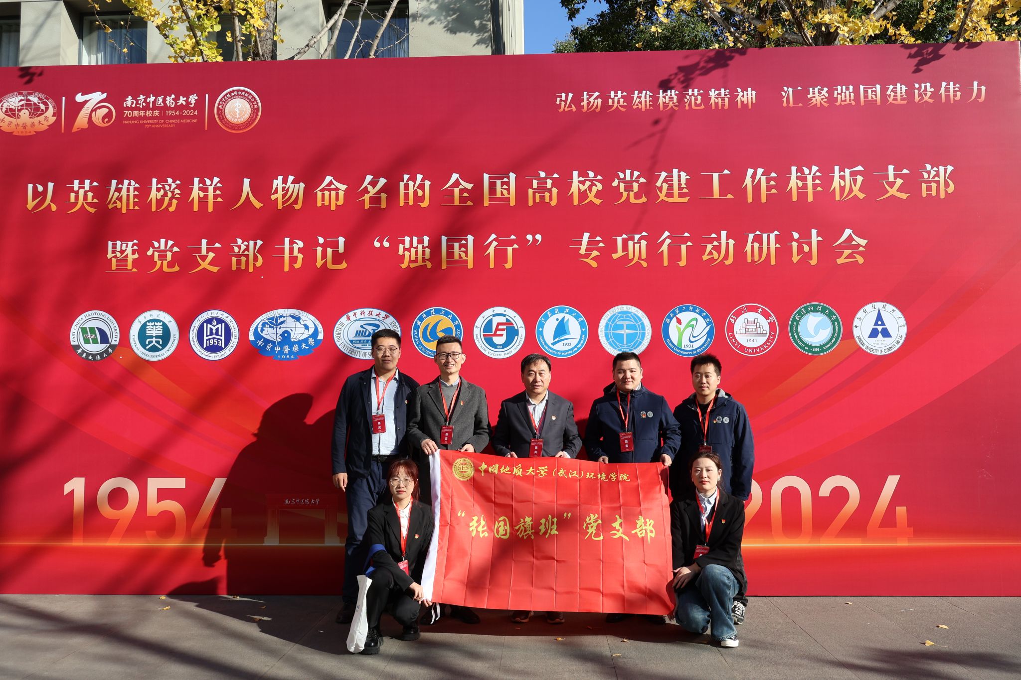 (通讯员郭玉倩  摄影陈俊男、南京中医药大学  编辑耿婧)11月23日,2024年以英雄榜样人物命名的全国高校党建工作样板支部暨党支部书记“强国行”专项行动研讨会在南京中医药大学举行,“张国旗班”党支部受邀参加。中国地质大学(武汉)内蒙古研究院执行院长李素矿,beat365中文官网党委副书记王海锋,辅导员陈俊男、孟庆达以及张国旗班党支部党员参加本次研讨会。