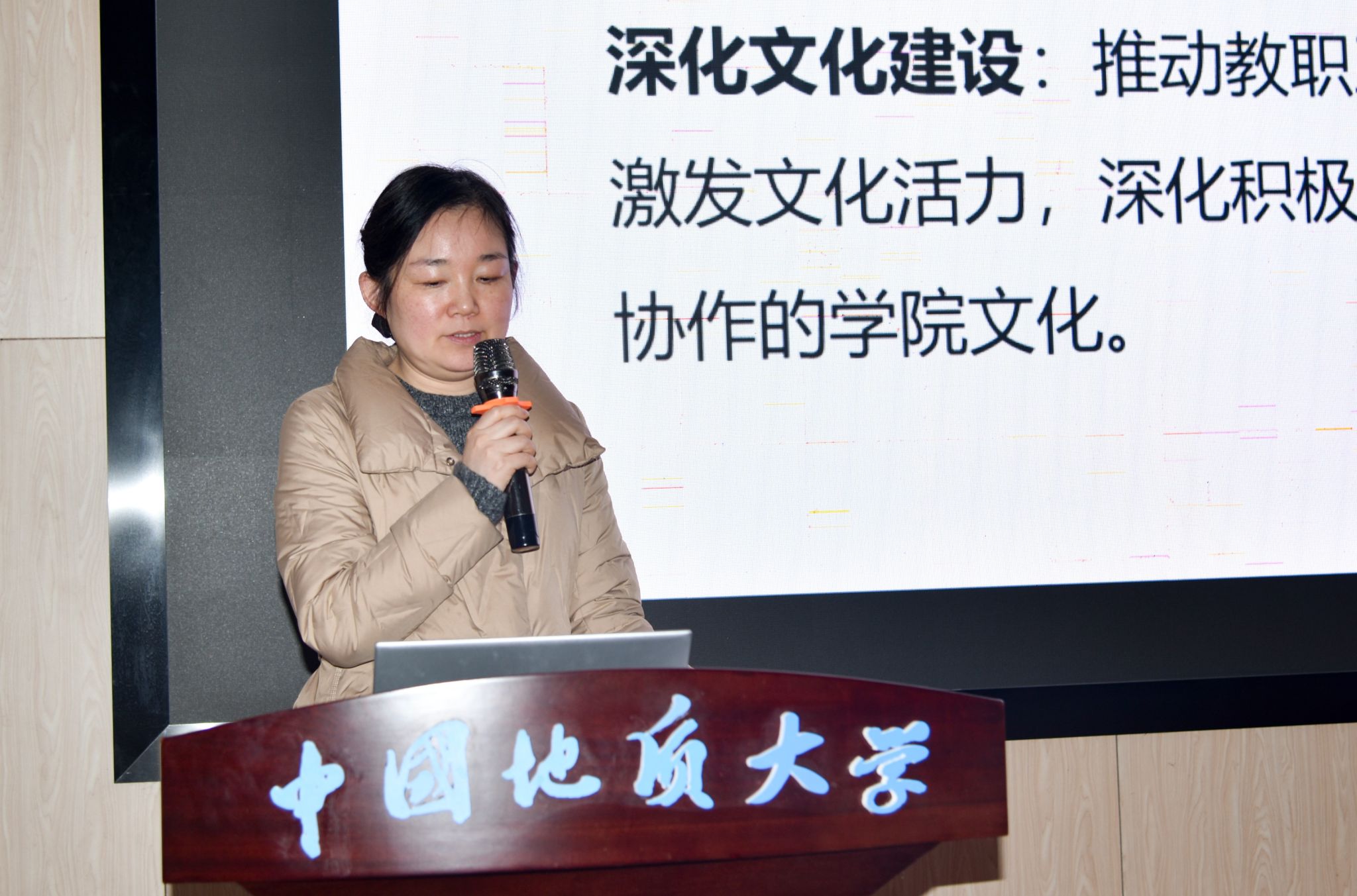 院党委书记姜明敏从筑牢工作基础、落实立德树人、打造核心优势、增强战略主动等方面,围绕高质量党建体系、高标准教育教学、高层次人才科研、高水平对外合作等内容作学院2024年度党建工作报告,进行个人述职述廉。