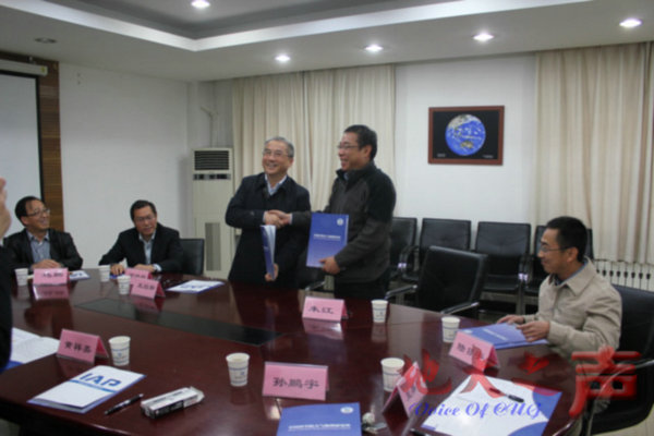 (通讯员李双林)4月19日下午,校长王焰新一行赴北京,与中国科学院大气物理研究所所长朱江签署共建“大气科学菁英班”协议。中国科学院大气物理研究所副所长陆日宇,研究生部主任王英辉、副主任孙鹏宇,我校副校长万清祥、beat365中文官网院长马腾、大气科学系主任李双林等参加签字仪式。