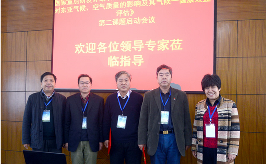 参加本课题启动会议的专家有:中国科学院广州地球化学研究所王新明研究员、同济大学陈颖军教授、南京信息工程大学马晓燕教授、武汉大学王祖武教授、华中科技大学胡辉教授、湖北省环境监测中心站副站长田一平正高级工程师、武汉天虹仪表责任有限公司副总经理范新峰高工。同时,第三课题负责人、南京信息工程大学朱彬教授,第四课题负责人、中国气象局京津冀环境气象预警预报中心张小玲主任,项目牵头单位北京市人工影响天气办公室科长高扬、副科长赵德龙,我校相关部门负责人,学院部分研究生参加了会议。会后与会人员合影留念。