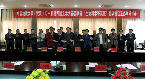 3月24日上午,学校在惠宾楼四层会议室举行共建“生物科学菁英班”协议签订及办学研讨会。参加此次会议的有来自中国科学院微生物研究所、生态环境研究中 心、城市环境研究所、武汉植物园及深圳华大基因研究院五家单位的领导和专家,中国科学院院士殷鸿福、校领导郝翔、王焰新、赖旭龙、万清祥以及校办、教务 处、学工处、beat365中文官网的领导等参加了签约仪式。
