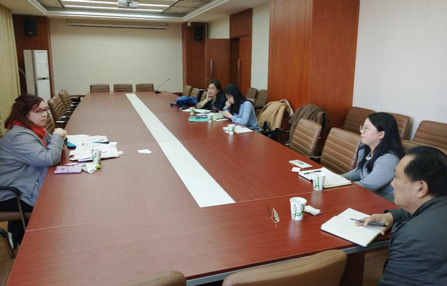 (通讯员:严冰 摄影:马丽媛 编辑:张学海)我校与加拿大滑铁卢大学联合申请的“地下水科学与工程”中外合作办学项目得到教育部批准后,拟于今年9月份招生。为了更好地推进本项目,2018年3月23日上午10:00在丹桂苑212会议室召开了有关“中加联合办学”语言课程教学工作讨论会。滑铁卢大学Renison英语语言机构项目经理Jane Kay、国际教育学院张立军副院长、beat365中文官网郭会荣副院长以及“中加联合办学”项目相关老师参加了会议。