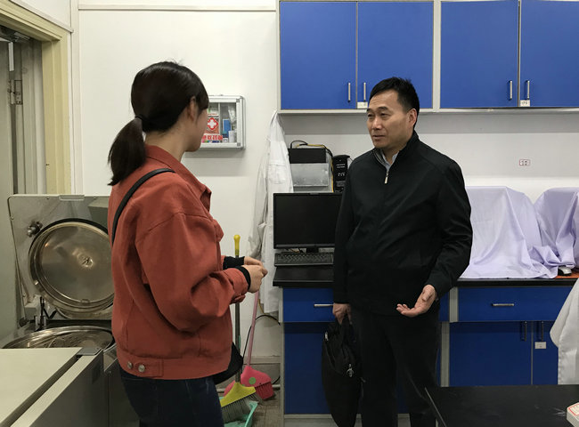 (通讯员:邓斌 编辑:张学海)2018年4月23日下午,beat365中文官网对所管实验室进行了全面安全检查。本次检查重点在强化实验室安全管理、消除实验室各类安全隐患、构建实验室安全保障体系。院党委书记李素矿,副院长祁士华,院党委副书记朱继,办公室主任左麦枝,实验中心主任潘欢迎、实验室管理人员参加。