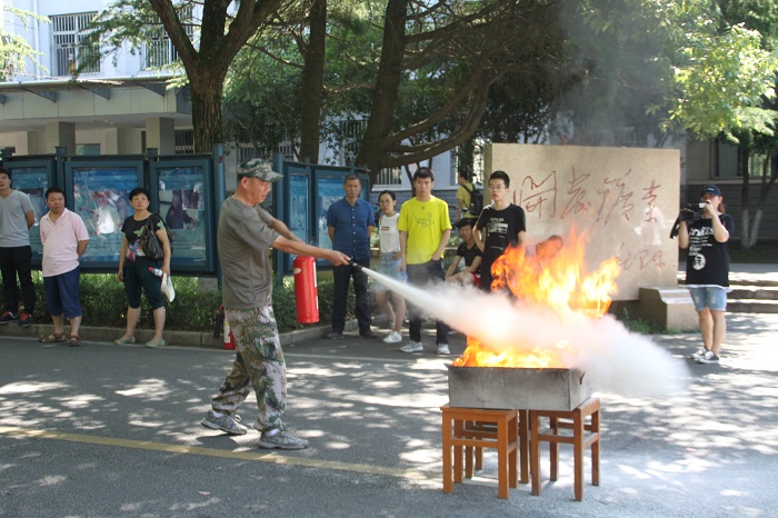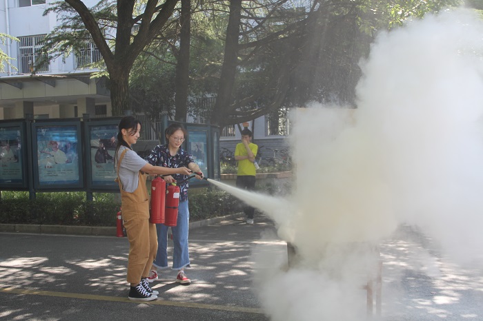 二是消防演练。消防科李洋副科长为师生做了“预防为主,防消结合”的主题宣传。李副科长详细地讲解了安全用电、火灾报警、火场自救以及灭火器使用等四个方面的注意事项,介绍了手提式灭火器的配置情况及使用方法,强调了不同灭火器的适用范围和使用时注意事项。beat365中文官网的师生分别参与了干粉灭火器和二氧化碳灭火器的演练。