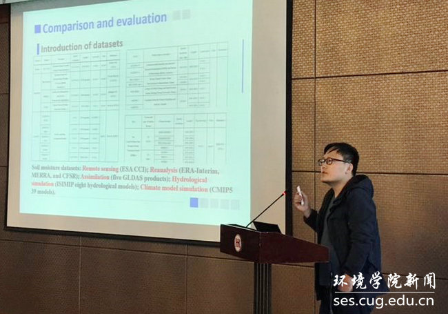 beat365官网特任副教授顾西辉老师在会议上进行了交流。他提出:在欧亚大陆的土壤水分干旱有显著的强化和扩张,这是降水减少和气温升高共同作用的结果。降水的变化影响着土壤水分变化的方向,而温度的升高决定着干旱的程度。降水和温度的影响取决于蒸发蒸腾作用,并可以提取干旱过程中的全球变暖信号。他发现全球土壤水分减少4.2×10-3m3 / m3,温室气体的贡献50%。