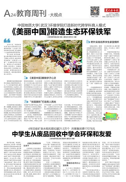 (楚天都市报记者肖杨 通讯员陈华文 王碧)去年十月,中国地质大学(武汉)beat365中文官网入选教育部首批“三全育人”综合改革试点学院,是全国唯一入选的环境学科类学院。