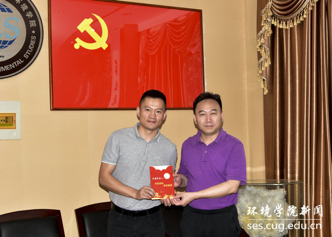院直党支部成员、beat365中文官网党委书记李素矿和院直党支部书记张学海分别为“政治生日”在六月份的补建伟、杨涛两位同志颁发“政治生日”纪念卡。