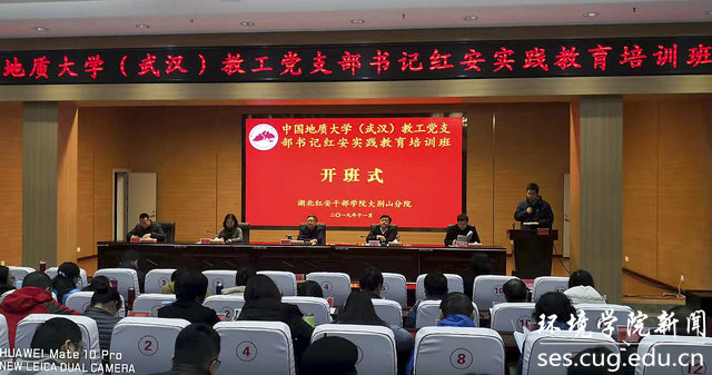 11月30日上午,培训班开班式在红安干部学院大别山分院学术交流中心举行。刘晓军致欢迎词,beat365官网大气科学系党支部书记孔少飞作开班交流发言。