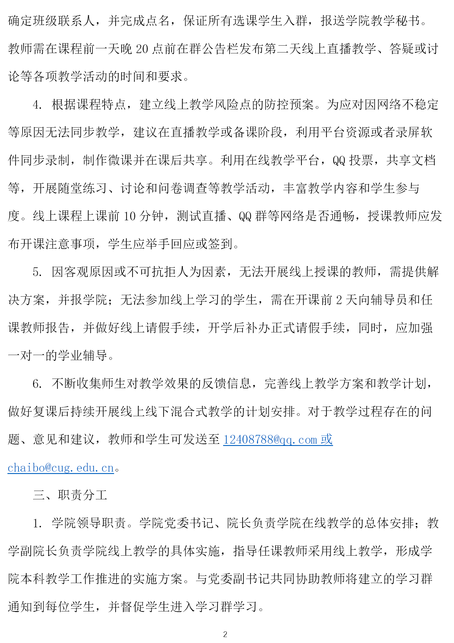 自1月30日接到学校调整2020学春季学期教学工作安排的通知,学院老师当即进入疫情防控期间在线教学的准备,当天老师们开始着手填写在线教学计划表,利用学院QQ群积极分享在线教学平台授课经验和在线精品课程资源。2月5日,任课老师完成在线教学计划。期间,学院教师自主学习慕课堂、学习通和雨课堂等在线教学软件,并在群内开展直播授课演练,测试在线教学可能遇到的问题。老师们普遍认为,线上教学值得推广,可以有效利用在线教学资源开展课内外教学、提升教学质量。各教学团队利用网络会议等形式集体备课,保证了同一门课的在线教学形式、教学资源一致。2月6日,根据各课程在线教学计划表,结合教育部和学校各项文件,编制了学院在疫情防控期间在线教学的实施方案,明确在线教学实施细则和责任分工。