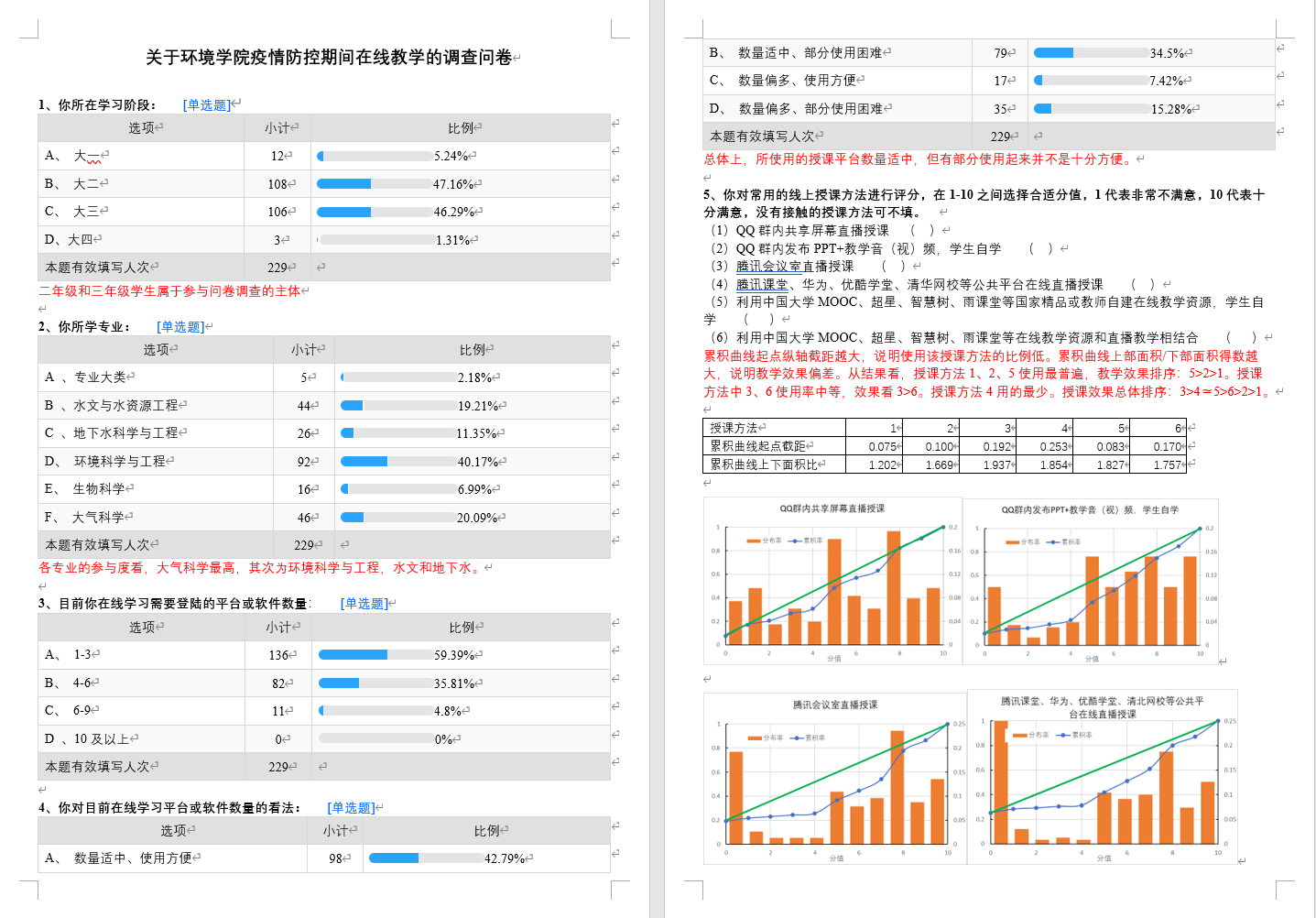 在线教学第一周,老师们积极分享在线教学经验,并通过问卷调查收集学生意见,形成了调查总结报告,指导优化在线教学方案。调查结果显示,学院在线教学秩序良好,老师准备充分、教学目标明确,教学效果良好。教学团队在教学过程中发挥了积极作用,教师、班主任、辅导员和学生党员干部在网络育人环节协同发力,能够引导学生以积极的心态投入学习,最大限度地消除了居家学习期间的焦虑情绪。