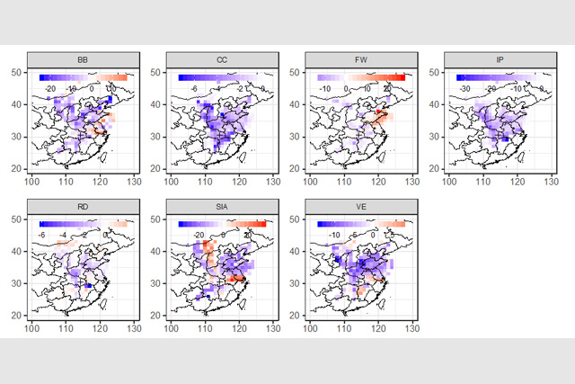 研究还对比了两个时段影响武汉市PM2.5的潜在源区的源贡献率的变化,发现影响武汉的大部分地区的PM2.5各类源贡献都呈现出下降趋势,但烟花燃放FW、二次无机源SIA和机动车尾气VE在部分地区存在升高的现象,与二氧化硫在大气中转化速率增加以及这些区域源排放可能没有明显减少有关。