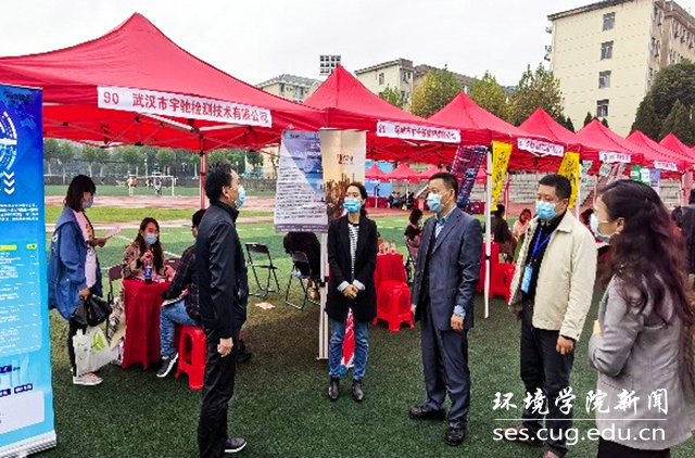 (通讯员陈华清 编辑严丽莎)10月31日上午,由湖北省教育厅主办,我校承办的湖北省2020年高校毕业生供需见面月大型招聘会·2020年就业协作会暨校友企业专场招聘会,在南望山校区西区运动场举行。学院党委书记李素矿一行看望校友企业和合作单位招聘工作人员,询问招聘情况,了解毕业生就业行情,推荐环境类毕业生,听取他们对beat365中文官网毕业生就业质量评价和意见建议。