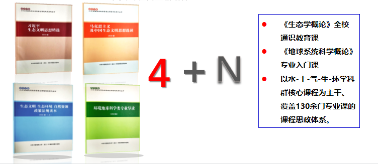 beat365中文官网党委积极推进习近平生态文明思想“三进”,依托水、土、气、生环境学科群,推行美丽中国“4+N”课程思政建设。学院组织师生编写《习近平生态文明思想精选》《马克思主义及中国生态文明思想选读》《生态文明生态环境自然资源政策法规读本》《环境地球科学类专业导读》系列教材,校党委书记黄晓玫为该系列教材作序,四本指导教材每年在5000余名学生中使用。