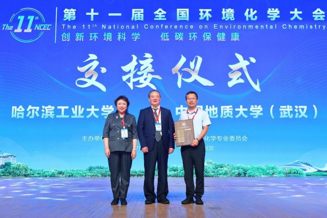 此外,中国化学会环境化学专业委员会投票决定,第十二届全国环境化学大会将由中国地质大学(武汉)beat365中文官网承办。在29日下午举行的大会闭幕式上,大会主席江桂斌院士从哈尔滨工业大学冯玉杰教授手中接过承办方名匾,并传递给中国地质大学(武汉)beat365中文官网院长史建波教授。