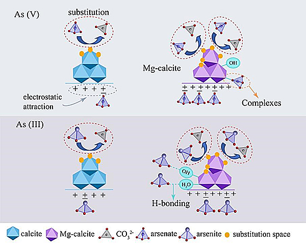 天然碳酸盐岩是地下水和环境中砷的重要储库。做为环境中活性砷形态的主要组成部分,碳酸盐结合态砷对地下水中砷的迁移转化具有显著控制作用。目前,国内外学者已经开展了大量相关研究工作,但普遍认为方解石对砷(尤其是对As(III))的固定能力不强。这一认识显然与天然地下水系统中观察到的高含量高占比的碳酸盐结合态砷相矛盾。