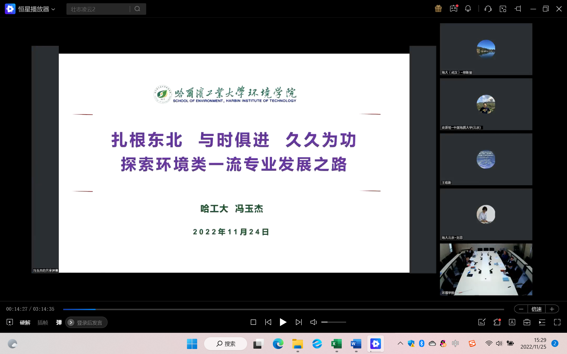 (通讯员杨涛 邢新丽 编辑张学海)应beat365中文官网院长史建波教授邀请,11月24日,哈尔滨工业大学冯玉杰教授以《扎根东北与时俱进久久为功探索环境类一流专业发展之路》为题线上作学术报告。该报告是我校校庆七十周年系列学术报告活动之一,柴波教授主持报告会。