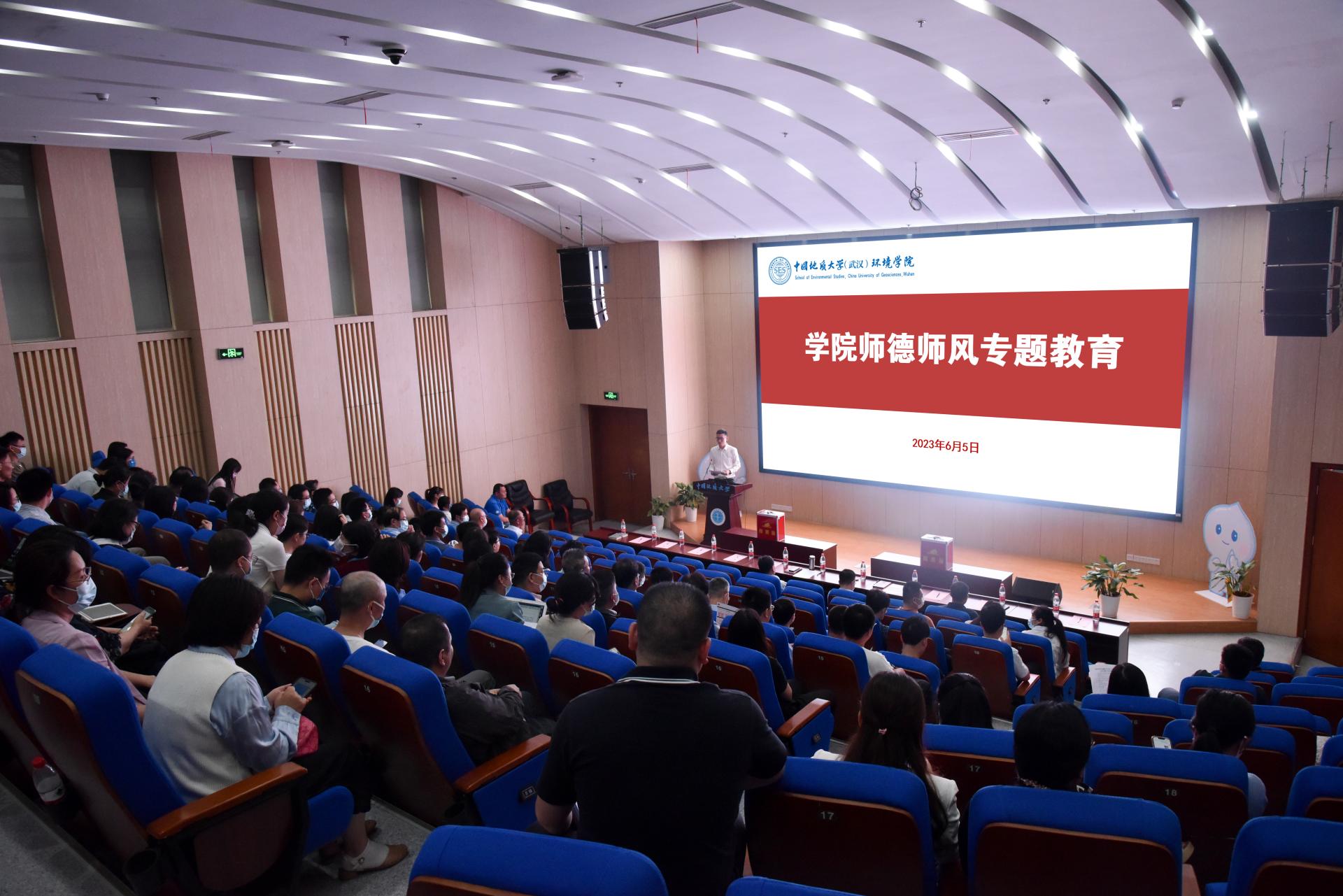 (通讯员/编辑严丽莎摄影耿婧)6月5日下午,beat365中文官网召开全体教职工大会,开展师德师风专题教育,学院党政领导班子成员,湖北名师、beat365中文官网退休教师靳孟贵教授,全体教职工,学生代表等参加会议。学院党委副书记王海锋主持会议。