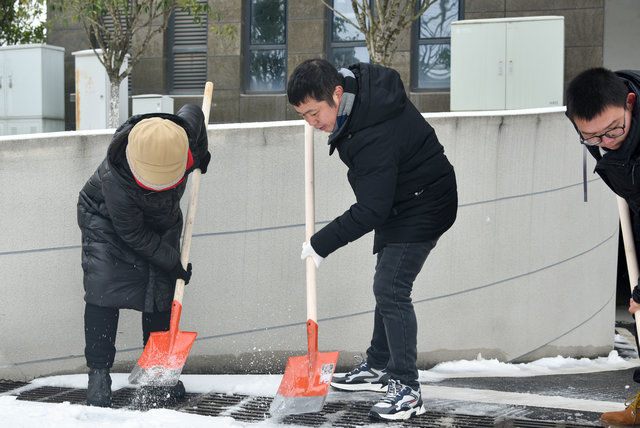 beat365中文官网分工会为铲雪师生准备了姜汤御寒。