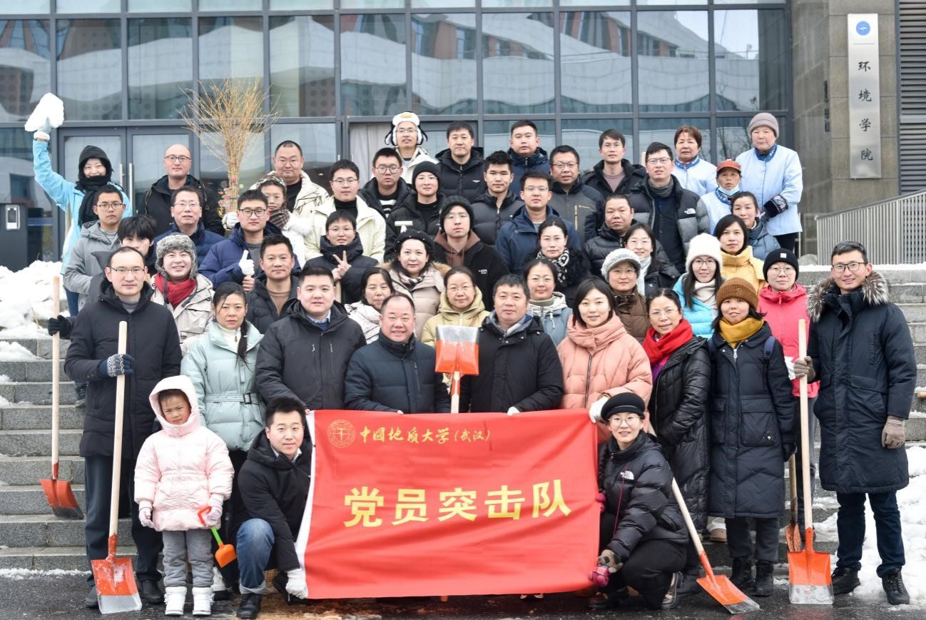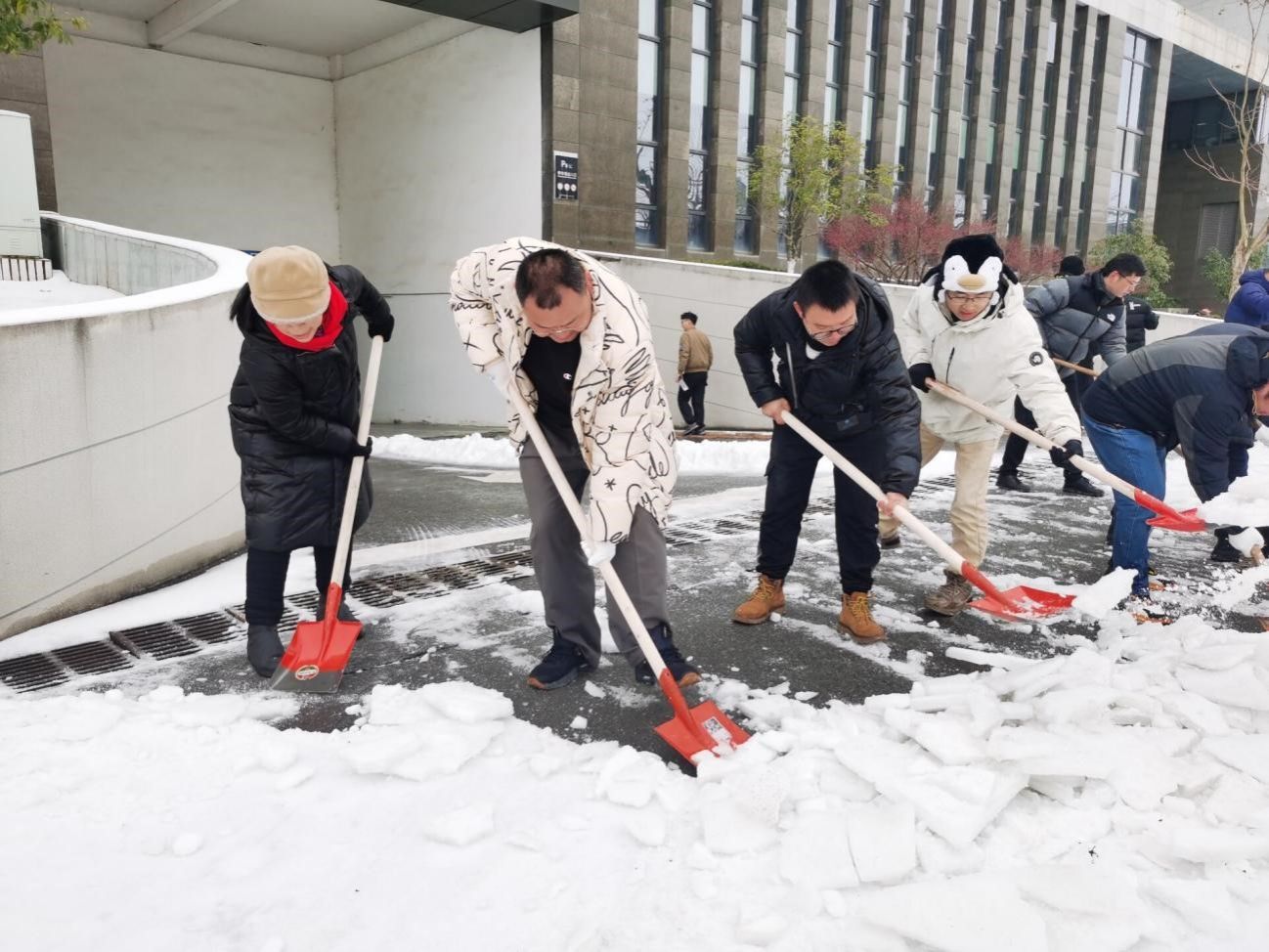 (通讯员刘凤莲 摄影张学海 编辑何娟)近日,武汉出现新一轮低温雨雪冰冻灾害天气,校园结冰路滑,存在许多安全隐患。为保障校园出行安全、通畅,营造良好的校园环境,beat365中文官网党委积极响应学校号召和部署要求,成立应对低温雨雪冰冻天气应急突击预备队,2024年2月23日上午,学院应急突击预备队和院师生开展铲冰除雪行动,清除科教楼四周边道路冰雪。