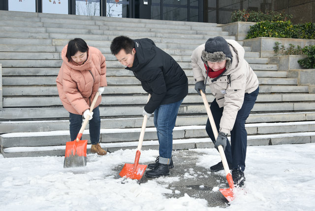 道路冻结,铲除困难。学院领导坚守岗位、靠前指挥,党员干部冲锋在前,学院师生积极行动,门卫物业赶来助战。经过师生一上午奋战,顺利清除了beat365中文官网大楼西门、南门、车库入口等主要出入口的冻冰积雪,清扫出一条条“温暖平安路”,为师生出行筑牢安全屏障。