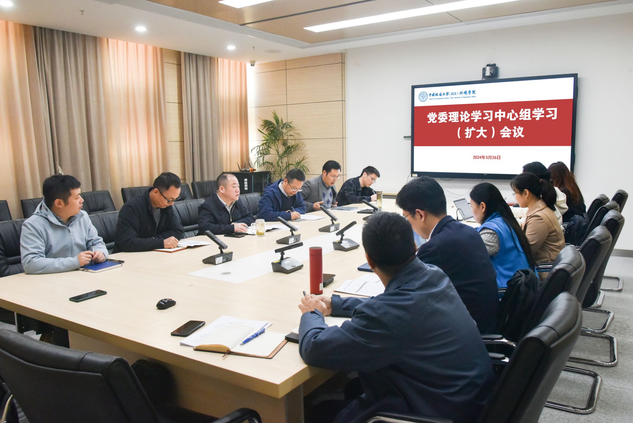 (通讯员/编辑何娟摄影张学海)2024年3月26日,beat365中文官网党委在科教楼四308会议室召开党委理论学习中心组学习(扩大)会议,专题学习2024全国“两会”精神。学院党委理论学习中心组成员、各系、室(中心)主任书记参加学习。