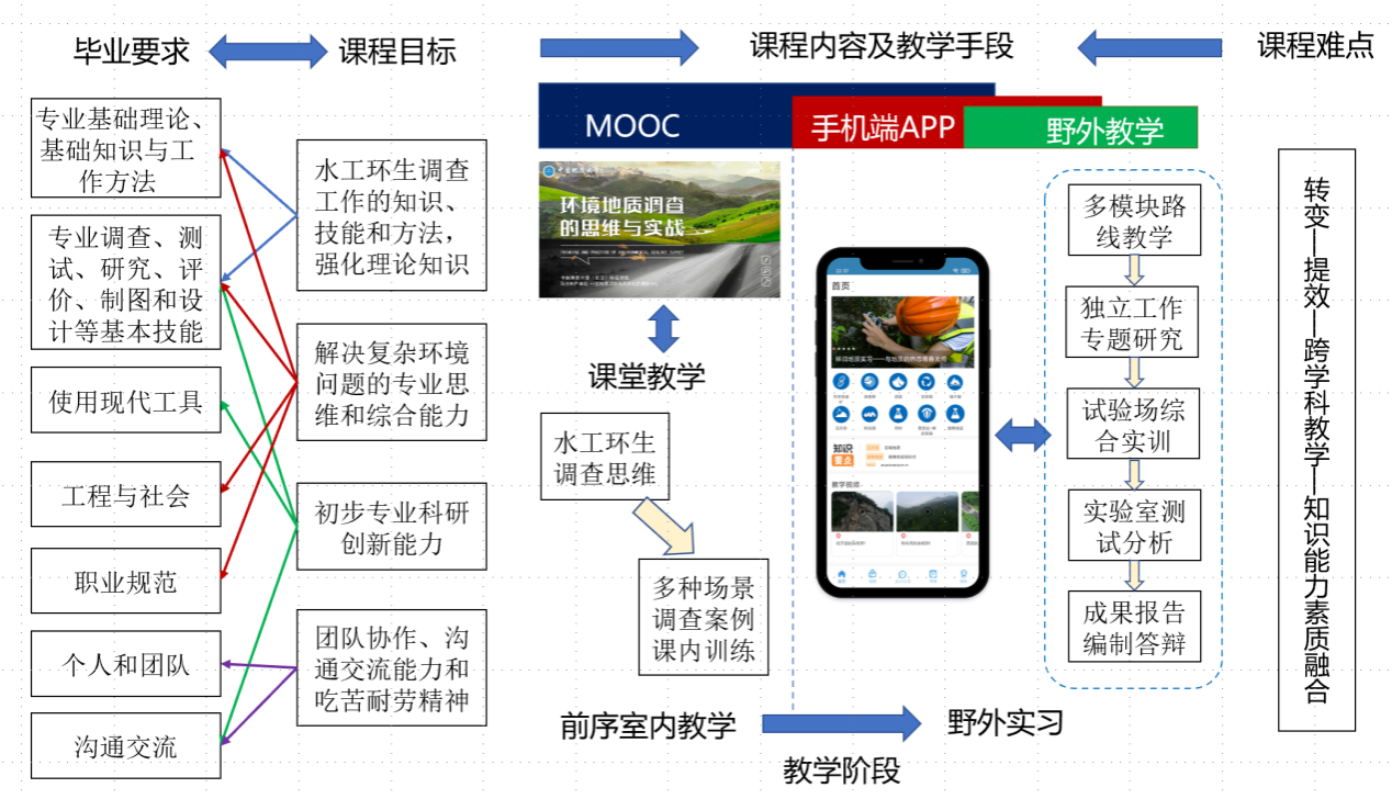 环境地球科学类专业教学实习(三峡)课程是环境地球科学类专业必修的实践课,是专业实践教学体系最重要的环节。课程依托我国南方最具代表性的地质现象,以及三峡库区典型的人地复合生态系统,以实习实践强化理论知识和专业思维,培养解决复杂环境问题的能力和素质。课程教学团队由老中青23名教师组成,创新了“一混三融”的教学方法。课程支撑了3个国家级一流本科专业、1项国家级教学成果奖、3项省级教学成果奖。学生普遍认为该课程不仅是本专业毕业要求最重要的支撑课程,也对工作后个人职业发展具有重要作用。