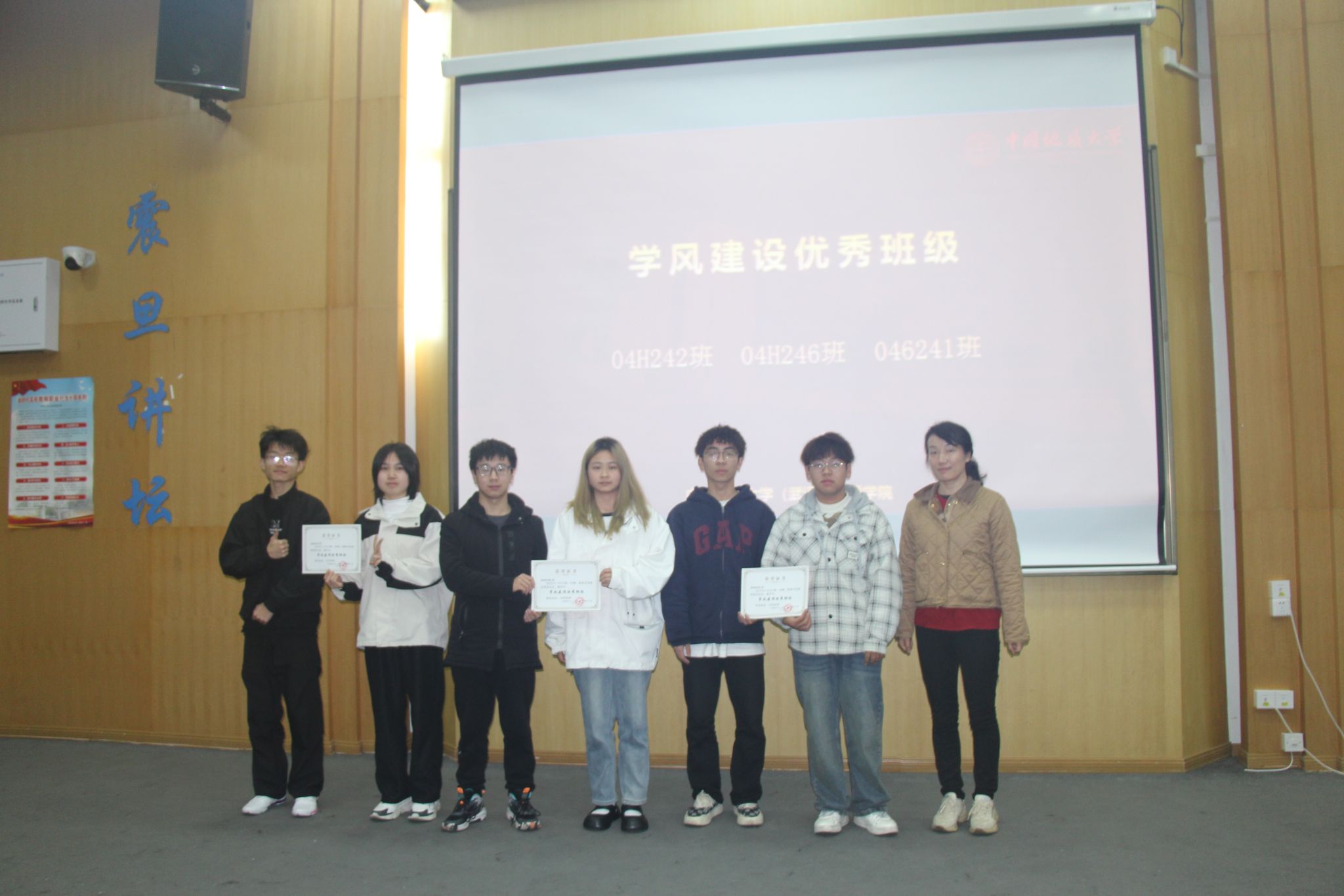 鲁小璐老师为学风建设优秀班级颁发荣誉证书