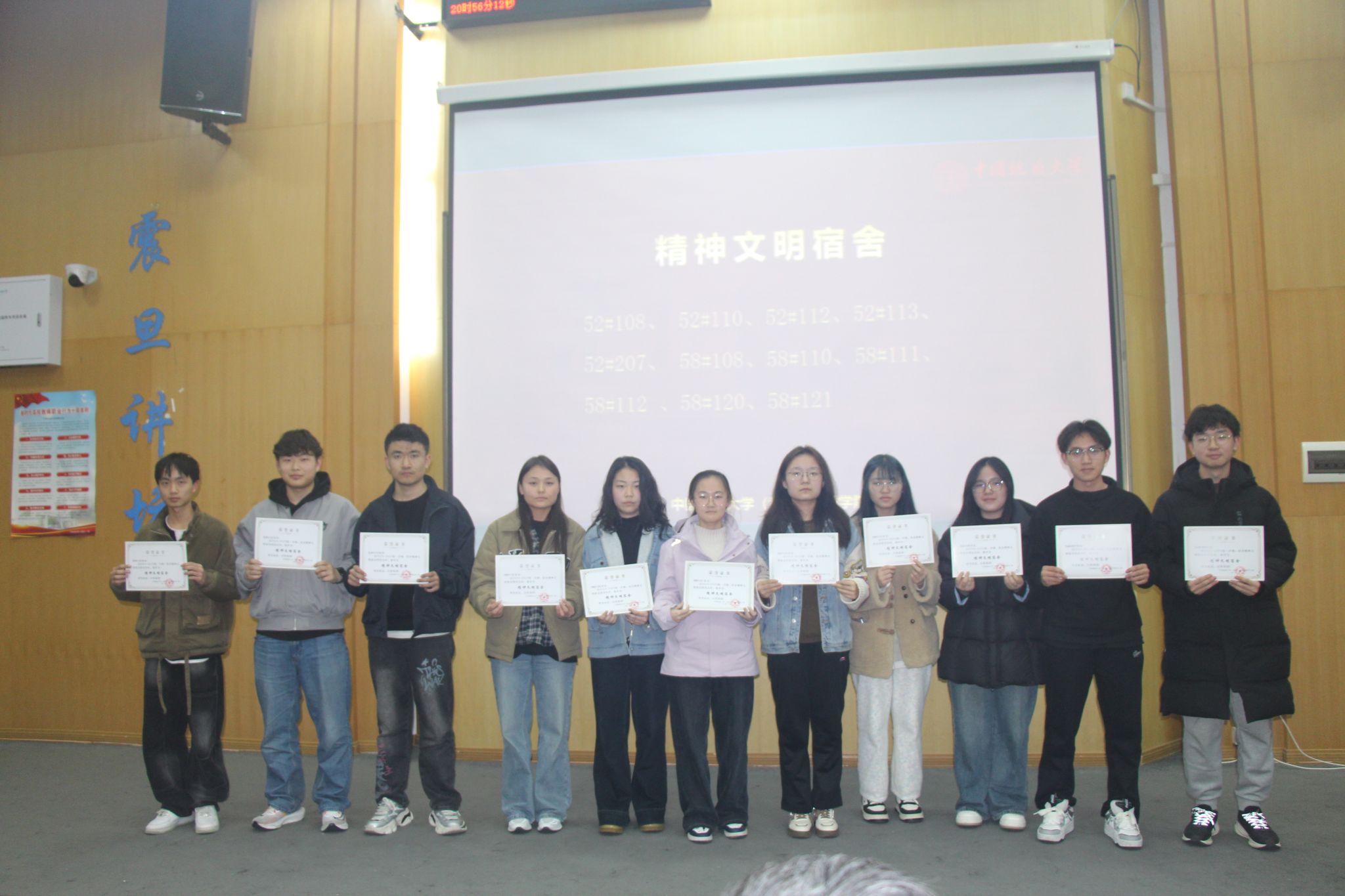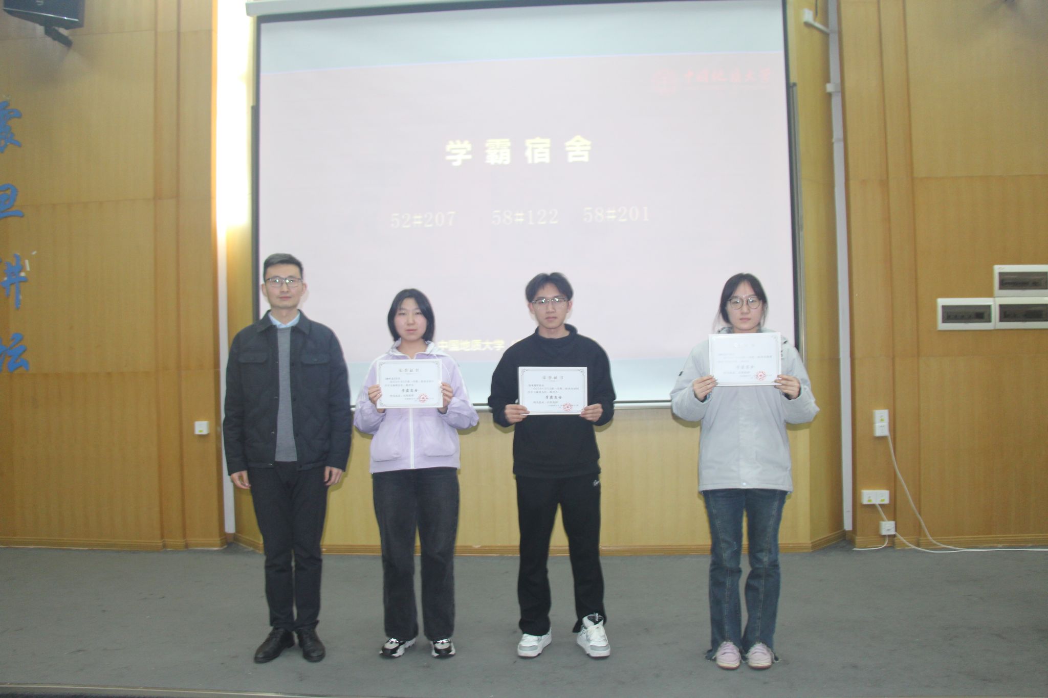 宋霖老师为精神文明宿舍颁发荣誉证书