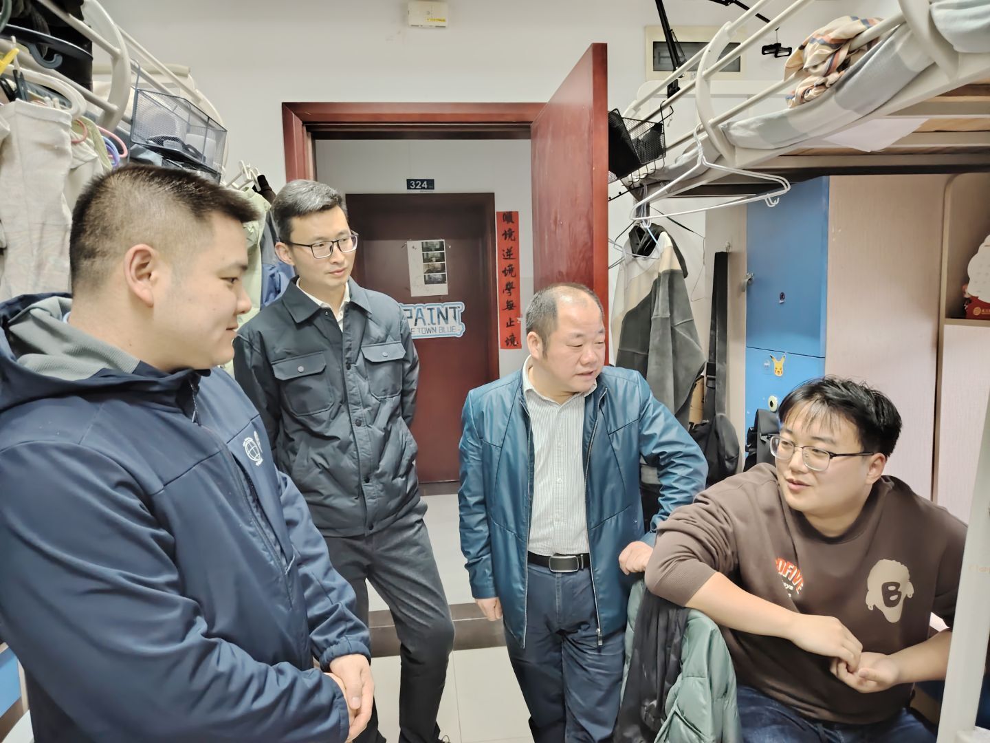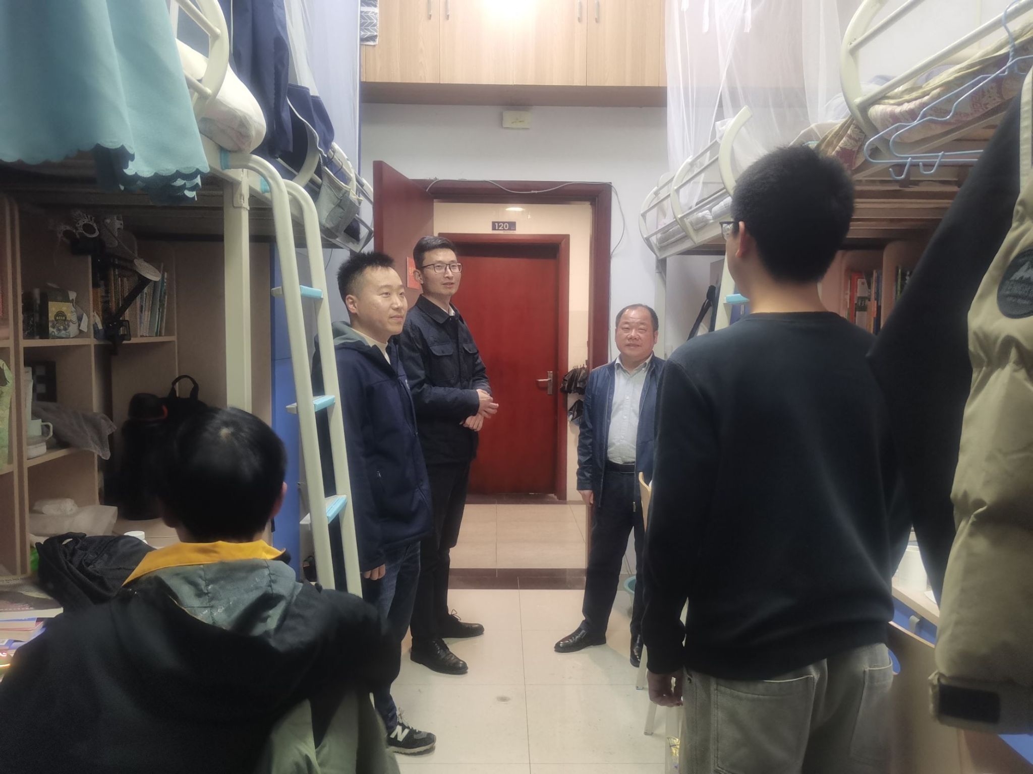 全体老师深入学生宿舍,仔细查看宿舍卫生状况和安全情况,提醒同学们要养成良好生活习惯,做到勤通风、勤洗手、勤消毒,携手营造整洁舒适的宿舍环境。他们针对同学们在毕业就业、心理困惑以及个人成长发展等方面的问题一一解答,并提出解决建议和措施。他们叮嘱同学们务必严格遵守假期离校请销假报备制度,假期出行合理安排行程,注意人身安全、财产安全、交通安全和信息安全。