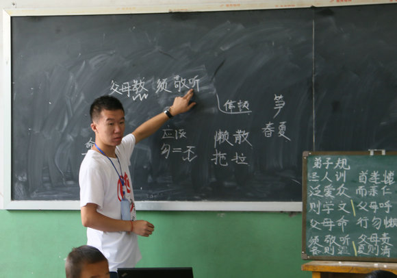 北纬37°35′52″,东经100°39′40″,是中国版图上的一个不起眼的小地方,却也是韩李莹大学三年来始终魂牵梦萦的地方。那里是国家级贫困山区——山西省吕梁临县庙坪村。顶着炎热的天气,睡着硬地铺,吃着“灶台饭”,他与同学们在短短的支教时光里为学生们讲授基础课程,教他们绘画书法折纸,组织大家举行运动会,举办合唱比赛……“20天的相处让我们真正体会到什么是‘奉献、友爱’,怎样去‘互助、进步’,朗朗读书声早已浸润我们的心田,与孩子们在一起的时光是我们最难忘的回忆。”