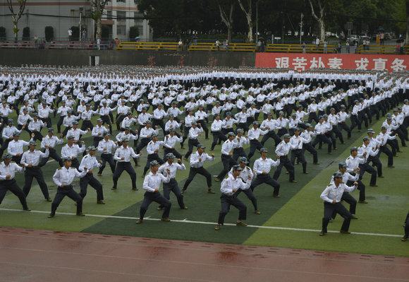 军姿训练 日常训练 军体拳方阵表演 方阵走过主席台 方阵走过主席台 同学们与教官合影