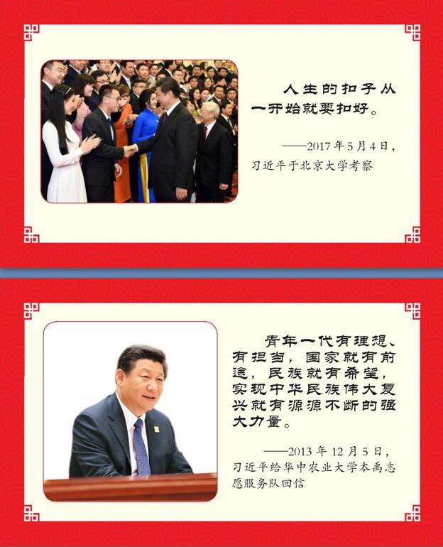 【编者按】青年兴则国家兴,青年强则国家强。青年是祖国的未来、民族的希望。习近平总书记高度重视青少年工作,亲切关怀青少年健康成长。习总书记对青少年成长成才的重要论述,为青年大学生坚定理想信念,牢固树立道路自信、理论自信、制度自信、文化自信,培育践行社会主义核心价值观,做“勤学、修德、明辨、笃实”的合格学生,指明了当代青年的历史使命和成长道路,是高校实现立德树人根本任务的根本遵循。现将习近平总书记对青年学生寄语摘编如下,敬请广大师生学习研究践行。