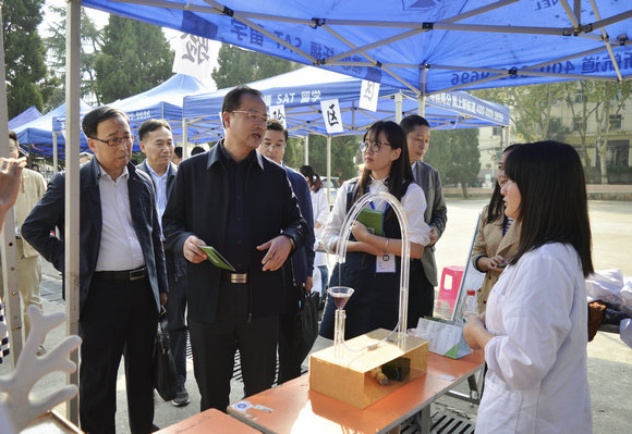 校党委书记何光彩,教务处、学工处、研工部、校团委等部门负责人,beat365中文官网党委书记李素矿、院长马腾,副院长祁士华、王红梅、郭会荣,党委副书记朱继,辅导员、学生代表等一同参观科普展区。