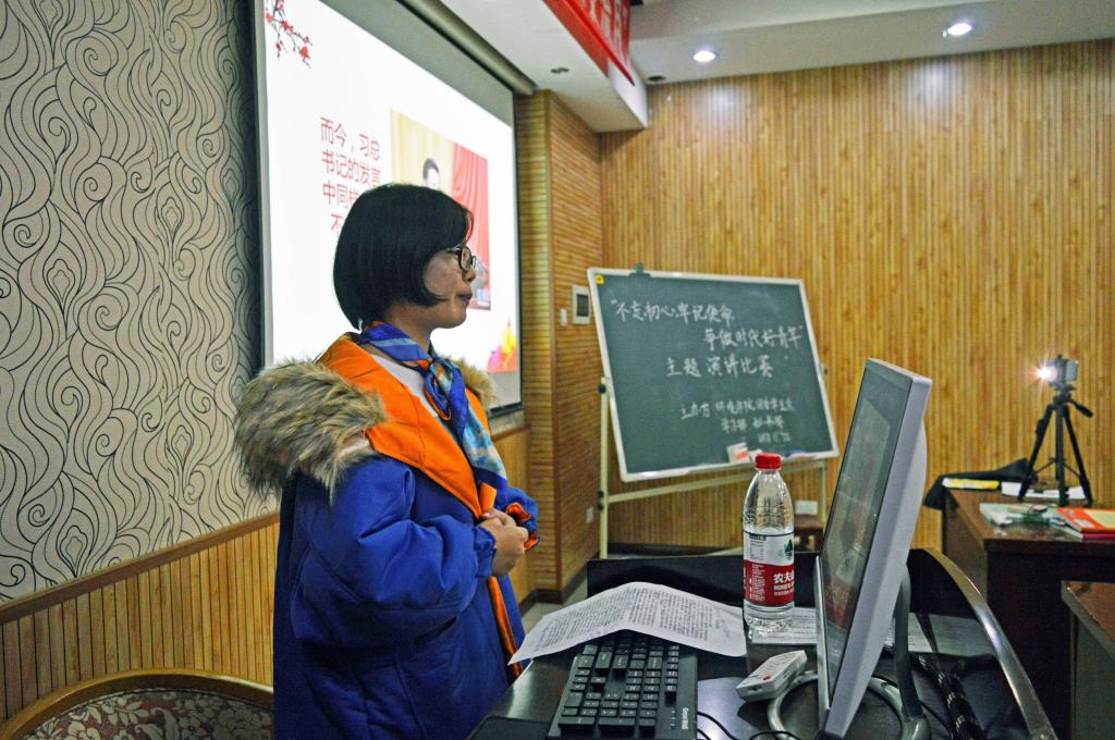 邓芳同学伴着背景音乐声情并茂的演讲感染着在场的观众,孙敏坤大气沉稳又不失幽默的演讲获得了观众们的掌声。部分演讲者全程脱稿,还有两名学生尝试用全英文演讲的形式阐释他们对中国梦和初心的理解,令人耳目一新。