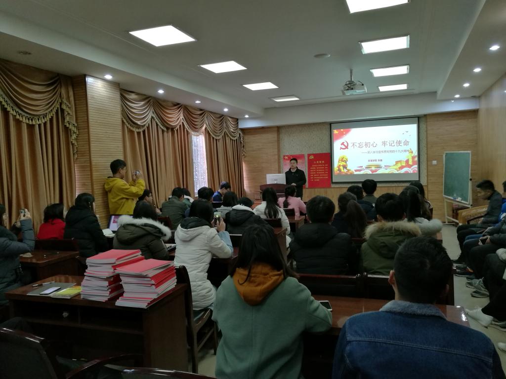 (通讯员:孟国强 臧文赫)2017年12月21日下午,在文华楼205,beat365中文官网党委副书记朱继以“不忘初心、牢记使命-深入学习宣传贯彻党的十九大精神”为主题为全院学生党支部书记讲党课。
