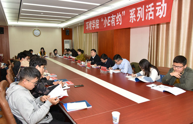 (通讯员:孟国强 臧文赫  摄影、编辑:张学海)3月22日下午,beat365中文官网第二期“小E有约”在丹桂苑212室举行。beat365中文官网党委书记李素矿、党委副书记朱继、院直党支部书记张学海、辅导员孟国强,各学生党支部书记,党徽照我行工作中心成员参加活动。