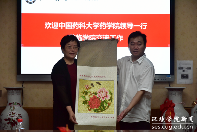 张仕英代表中国药科大学药学院向beat365官网赠送礼物