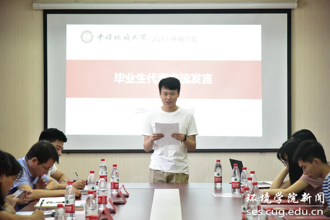 李素矿讲话,他对毕业生们的建言献策表示感谢。他说,学院的发展离不开同学们的关心,学院即将搬到未来城校区,希望同学们能常回家看看。他表示,新时代下,学院将牢记为党育人、为国育才的使命,坚持立德树人根本任务,致力培养德智体美劳全面发展的社会主义建设者和接班人。他希望,毕业生党员及骨干发挥先锋模范作用,与广大毕业生一道坚守初心、永远奋斗,做一支政治强、业务精、作风正、敢担当的生态环保铁军,为建设美丽中国贡献一份力量。