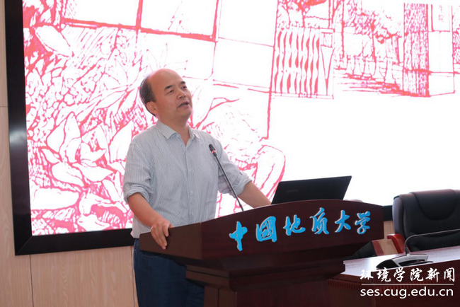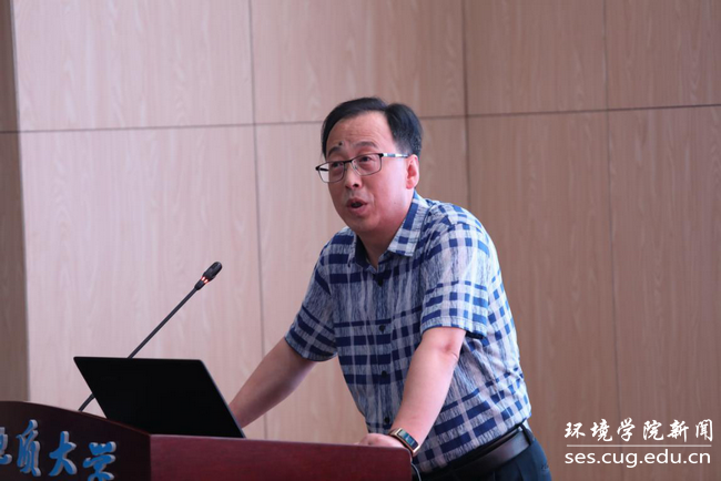 马腾致欢迎辞,并从历史沿革、学科建设、师资力量、学生培养等方面介绍学院近年来发展情况。他代表学院1800余名师生热烈欢迎校友们回家,对校友们长期以来关心学院发展、设立奖学金表示感谢,对校友们三十年来为国家改革开放作出的贡献、取得的卓越成绩表示敬意。他希望在校师生向校友们学习,弘扬“张国旗精神”,不忘初心、牢记使命,为地大梦、中国梦的实现不懈努力。