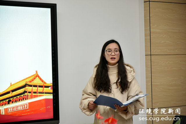 “党徽照我行”工作中心副主任白思佳代表“党徽照我行”工作中心从组织架构、日常工作、特色活动、院刊编辑、工作反思五个方面进行述职汇报。