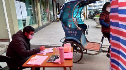 3月份,县内各单位接管卡点,社区负责的卡点被取消了,我便结束了社区卡点的值班。但是在3月7日,我路过环境保护局卡点时,看到由于过往人流量较大、人手不足,导致卡点通行速度过慢的时候,我便要求继续加入到卡点的值班中去,为过往人员测量体温,直到晚上九点半人流量逐渐少去之后再回家休息。