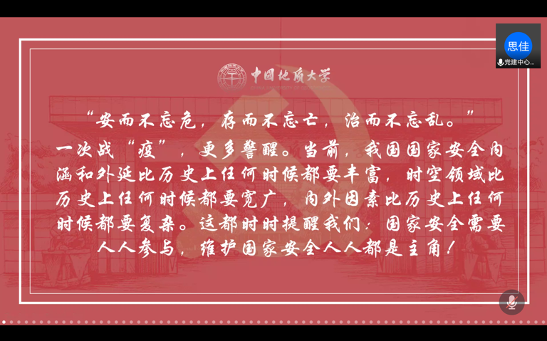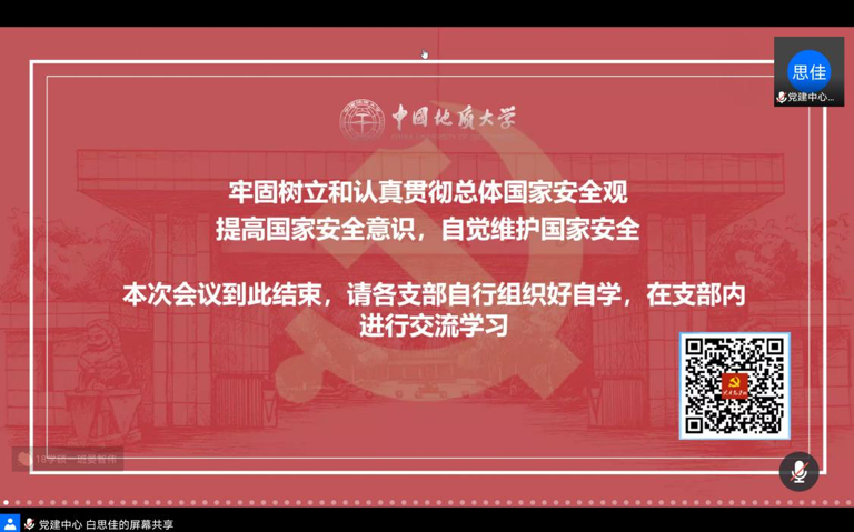 (通讯稿宋霖  编辑耿婧)2020年4月30日下午,beat365中文官网开展学生党支部四月线上联合主题党日,本次主题党日的主题为牢固树立总体国家安全观。学院党委副书记姜明敏、党建辅导员宋霖、全体学生党员参加会议,党建中心白思佳主持会议。