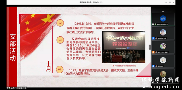 通过这次云共建活动,中国地质大学(武汉)beat365中文官网生物大气专业大学生党支部和南京大学大气科学学院本科生党支部建立了深厚的友谊,未来,两个学院将继续加强交流合作,携手共进,不断推动学院的党建发展、大气学科的建设。