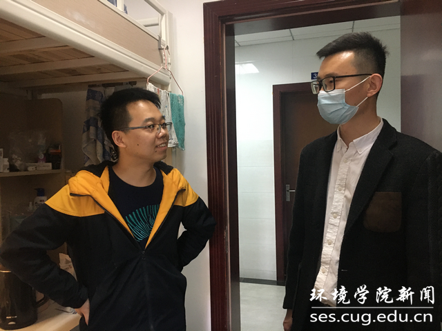 王海锋一行先后走访本科生、研究生宿舍,与学生亲切交谈,了解同学们学生生活情况,对学生进行安全知识宣传与教育,提高防范意识,警惕电信诈骗,提醒同学们注意用水用电安全,严禁使用违章电器。同时仔细检查宿舍卫生状况,叮嘱同学们保持良好生活习惯,维护好宿舍卫生环境。临近五一劳动节假期,王海锋提醒同学们注意五一假期出行安全,严格执行请销假制度,外出做好疫情防护。