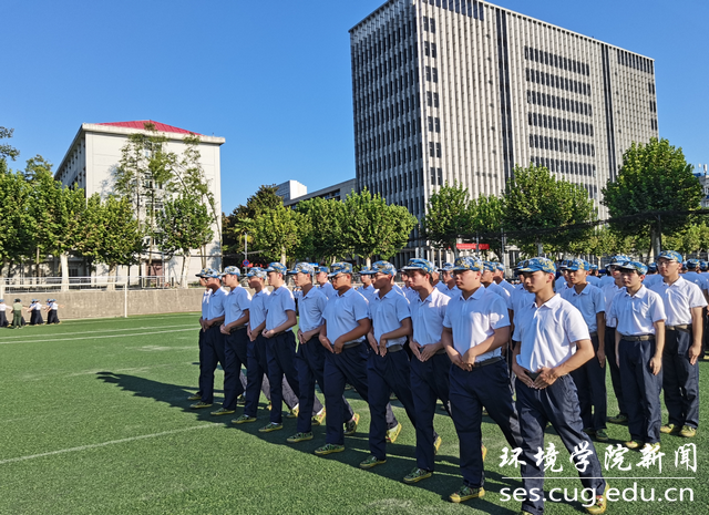 (通讯员陈俊儒、黄奕飞、高天靓、耿子涵  摄影陈俊男、部分来源地大微信公众号  编辑耿婧)9月9日,海天云蒸、艳阳高照,伴着明媚阳光,整齐划一的环境学子正式与教官相见,这是少年怀揣斗志与梦想的展望,更是对军人意志与品格的传承。同学们将要面对为期15天的考验旅程,他们满怀激情,整齐嘹亮的口号饱含张国旗学长的坚毅品格,铿锵有力的步履展现的是环境学子的专心有素。英姿飒爽、不苟言笑的教官们,步调整齐、口令洪亮。随着教官们的指挥一令一动,环境学子秣马厉兵、步伐刚劲、意气风发。绿茵场上严明统一,白衣黑裤整齐列队,蓝色帽檐下的年轻面孔早已缀满汗珠,一双双紧贴裤缝的双手一动不动,咬牙将军训的苦与累咀嚼,彰显内心深处的坚毅。